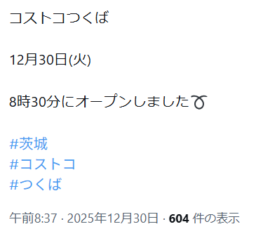 コストコつくば年末年始2025‐2026の営業時間スケジュール