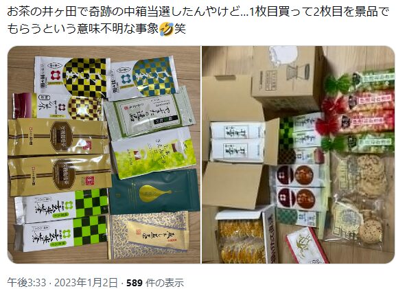 「お茶とお菓子はもちろん、なんと電化製品まで入っていて本当にびっくり!」(TBSニュースの報道より)