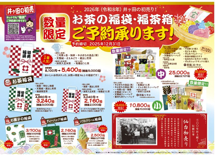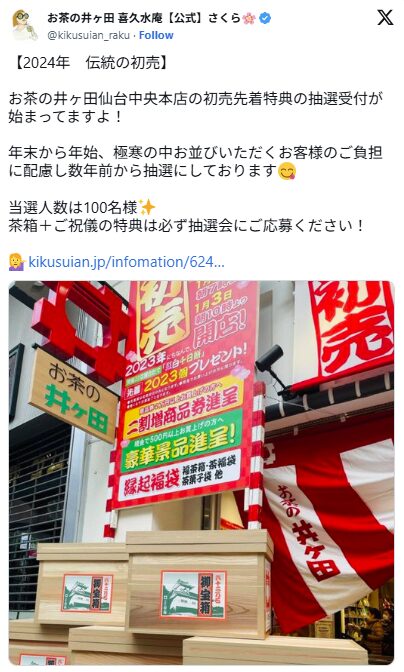お茶の井ヶ田の福袋は、宮城・仙台の新年を盛り上げる伝統的なイベントの一つです。